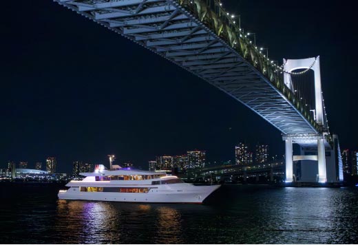 The Cruise Club Tokyo, Japan’s only waterfront oasis, offers two stunning places of relaxation in one: the canalside Club House Restaurant and the cruise ship Lady Crystal, dubbed “the Grande Dame of Tokyo Bay.” The Cruise Club Tokyo’s appeal to guests is sixfold: