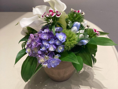 梅雨におすすめ♪紫陽花入りフラワーアレンジメント付きディナープランの紹介