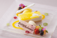 デザートはアニバーサリー利用に適したメッセージ入り特別シェアデザートを用意し、デザート時に撮影した記念写真1枚をプレゼント。