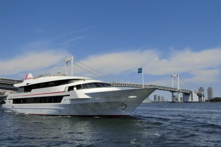 食後はクルーズシップ「レディ クリスタル」に乗船してアフタヌーンクルーズへ。乗船中にも1ドリンク付き。約45分間の東京湾クルーズで優雅なひと時を。
